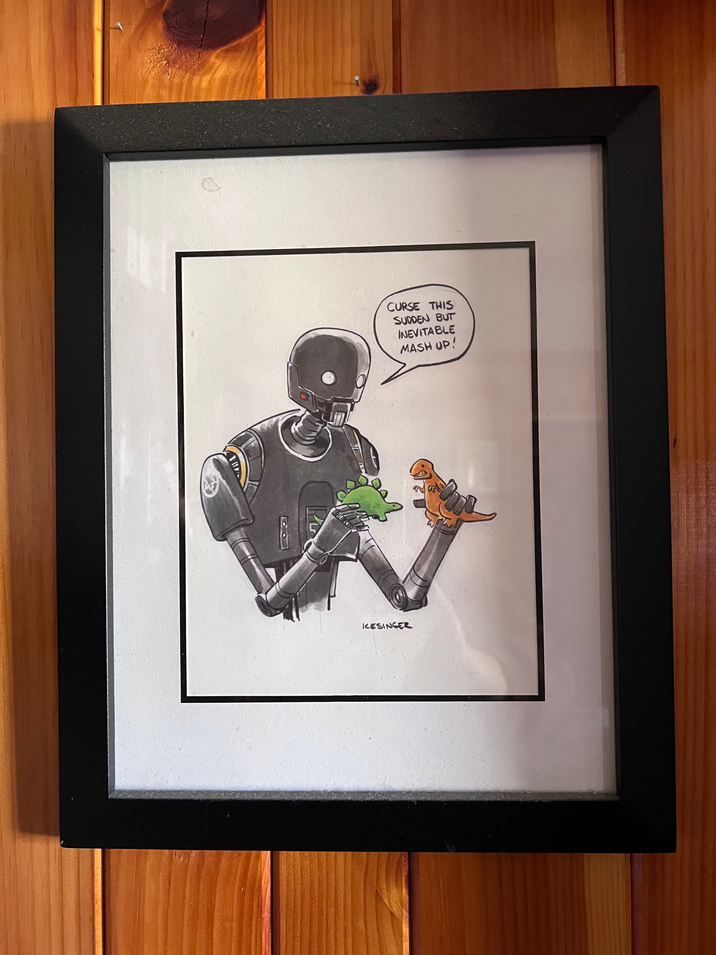 (They stand in defense of my bedroom, across from one of my favorite droids, illustrated by Brian Kesinger.)