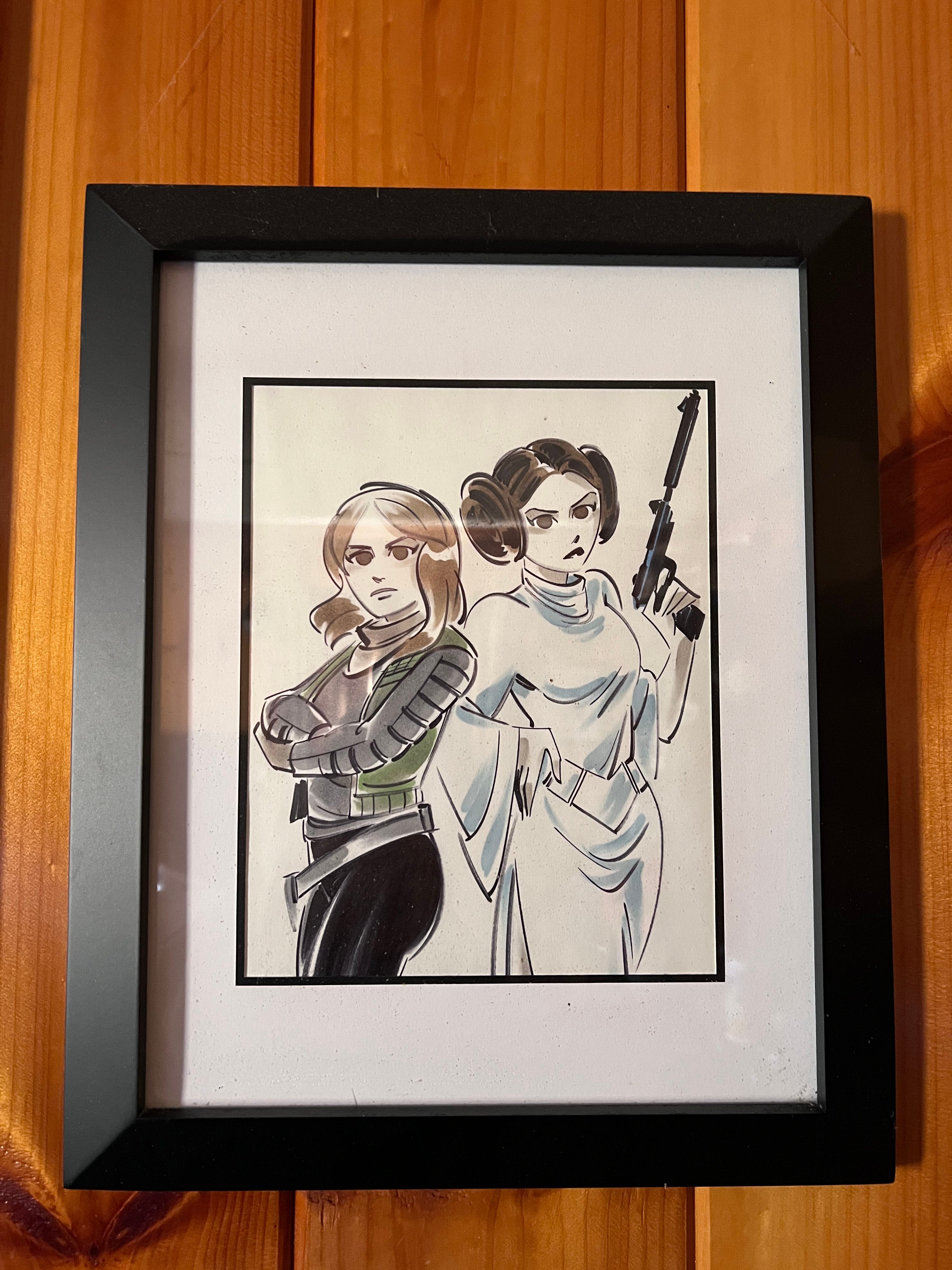And while that story will always hold a desperately dear place in my heart, I cannot express how much Leia has meant to me over the years. In fact, one of the first things I did after writing Jyn’s story was commission some art from one of my favorite artists, Nathan Greno, to illustrate my two favorite girls:
