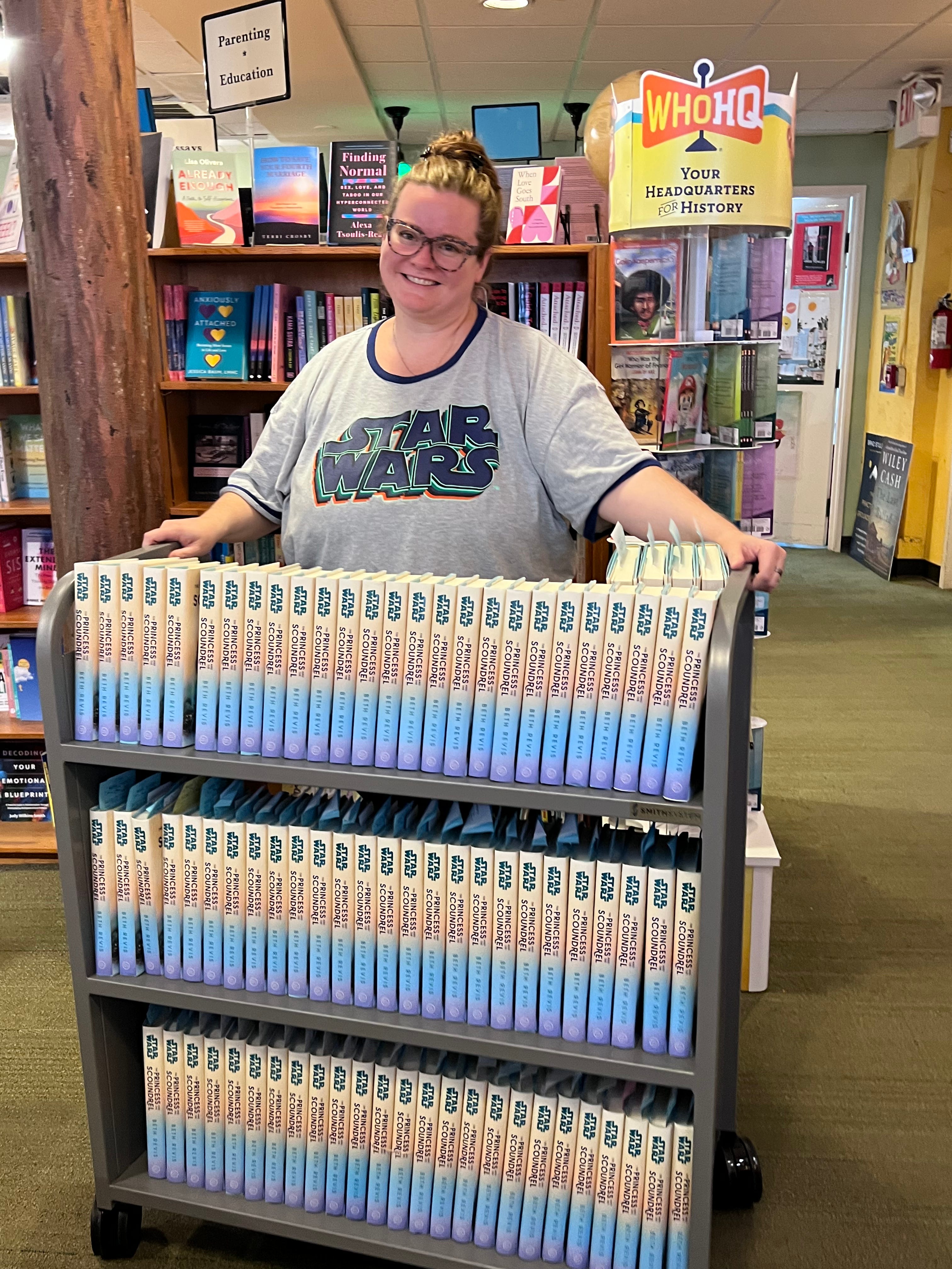 Me, at Malaprops, with a big ol’ rack of books, all signed and ready to ship!