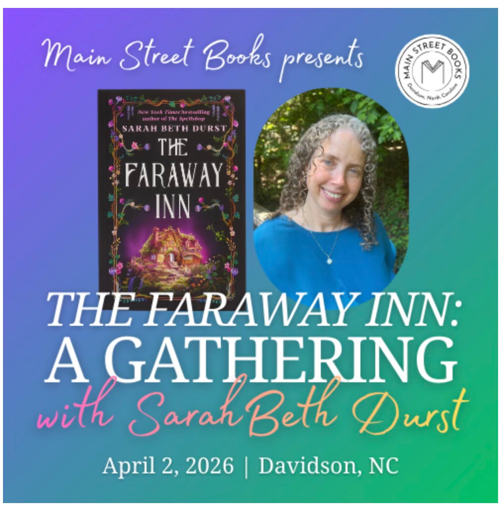 Romantasy fans, check in! I’ll be hosting Sarah Beth Durst for her upcoming The Faraway Inn, and I cannot wait to talk about cozy fantasy romance novels (and get Sarah Beth to sign my extensive collection of all her books, lol). All the details here!