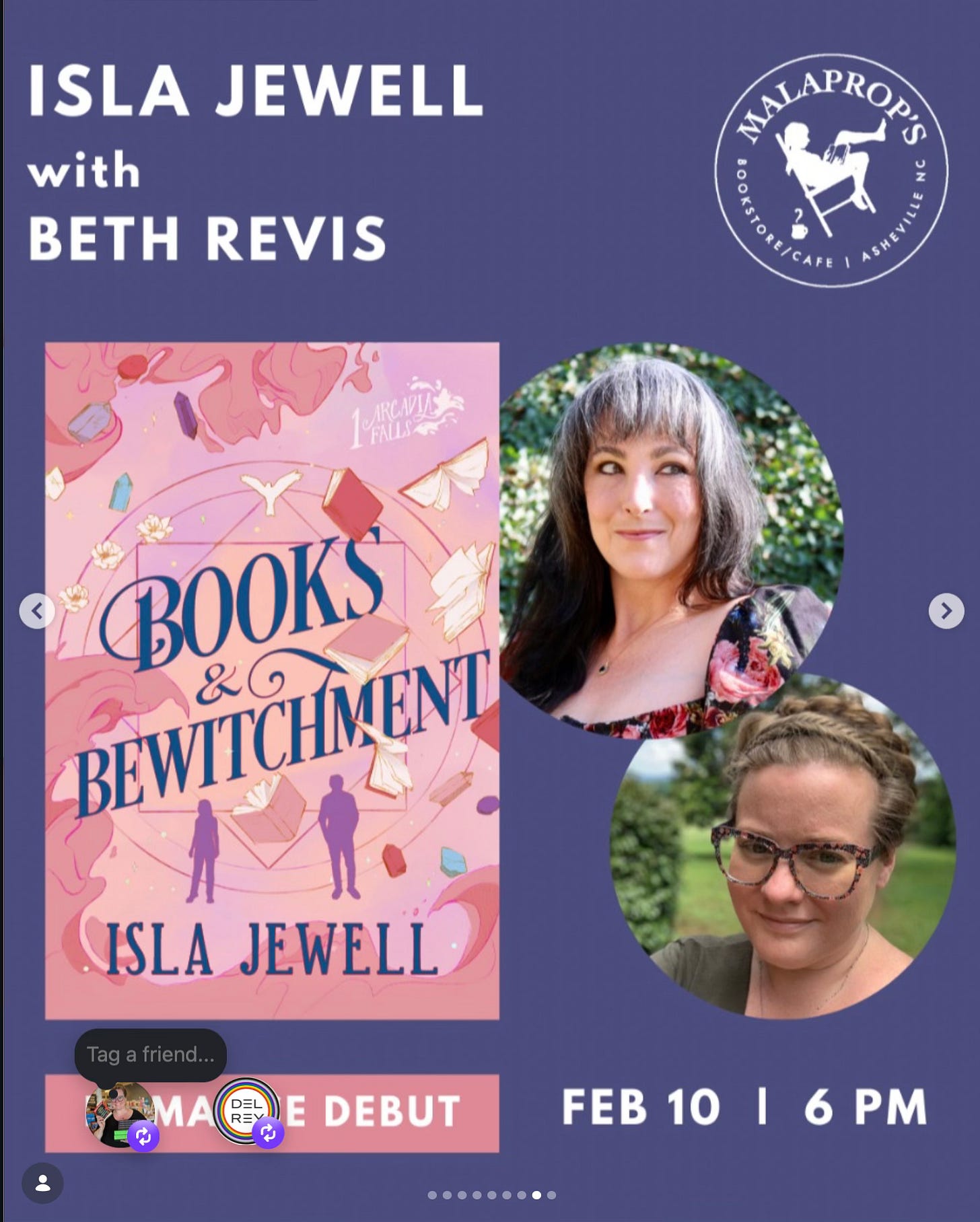 Join me with author Delilah Dawson (under her new pen name Isla Jewell) to celebrate the launch of this adorable fantasy romance, Books & Bewitchment! Locals, Delilah did some of her research at Malaprops, so it has a special connection to us! More details here.